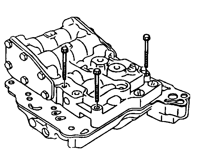 4. Install the three bolts in the lower valve body. Do not tighten the bolts at this time.