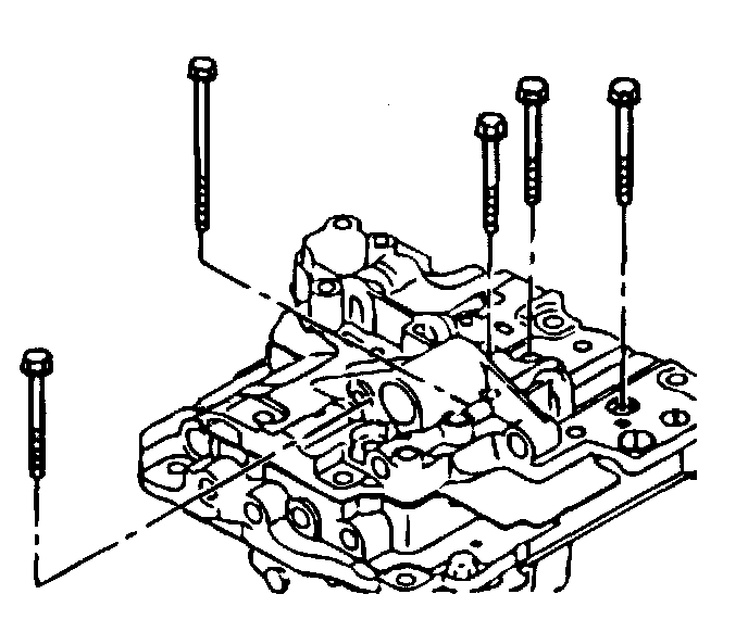 9. Install the five bolts in the upper valve body. Do not tighten at this time.