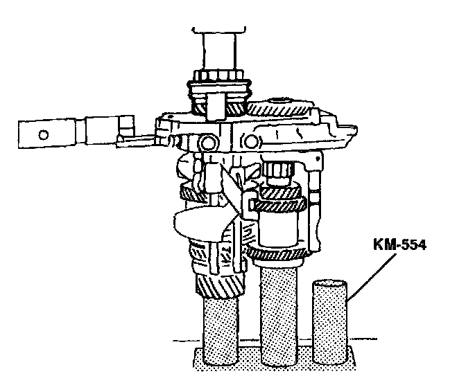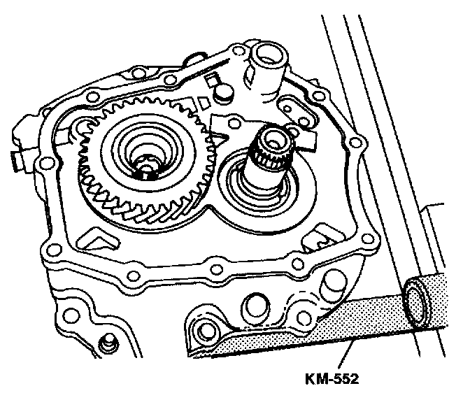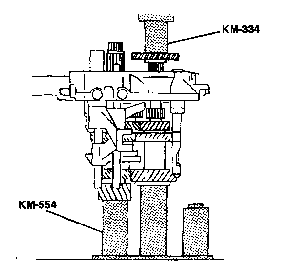 18. Install the input drive fifth gear using the installer KM-554 and the installer sleeve KM-334.