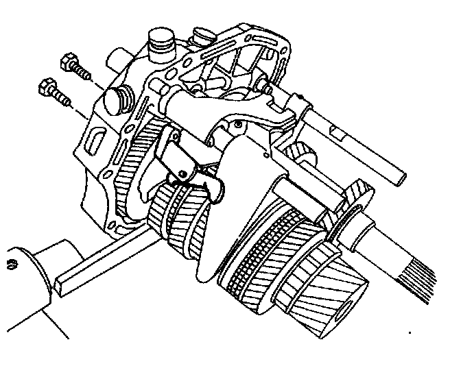 25. Install the bolts and the fifth-gear fork onto the bearing plate.