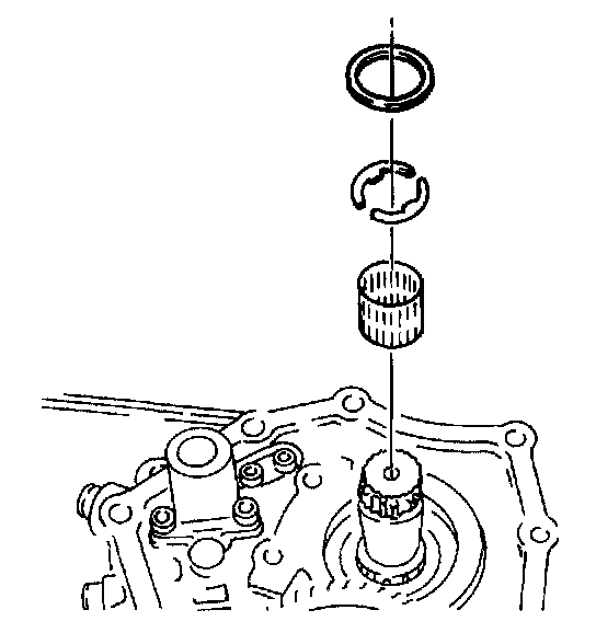 20. Install the thrust washers, the retaining ring, and the needle bearing into the mainshaft-driven fifth-gear assembly.