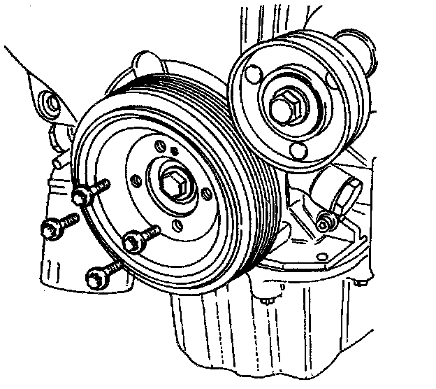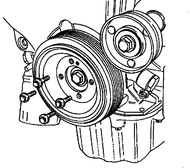 11. Remove the crankshaft pulley bolts.