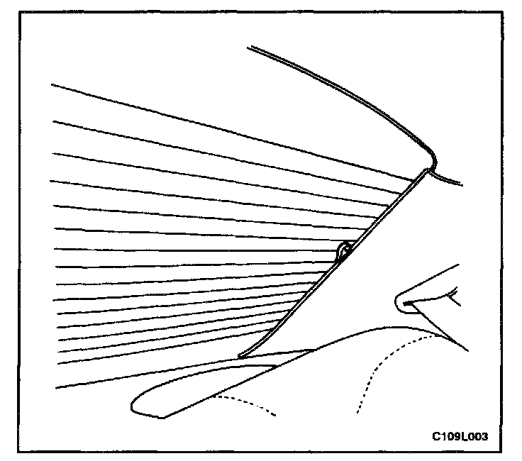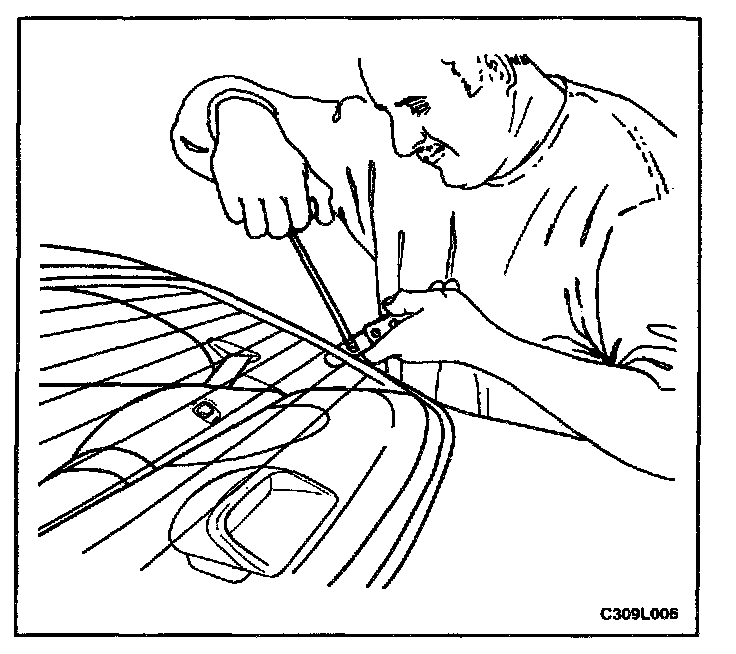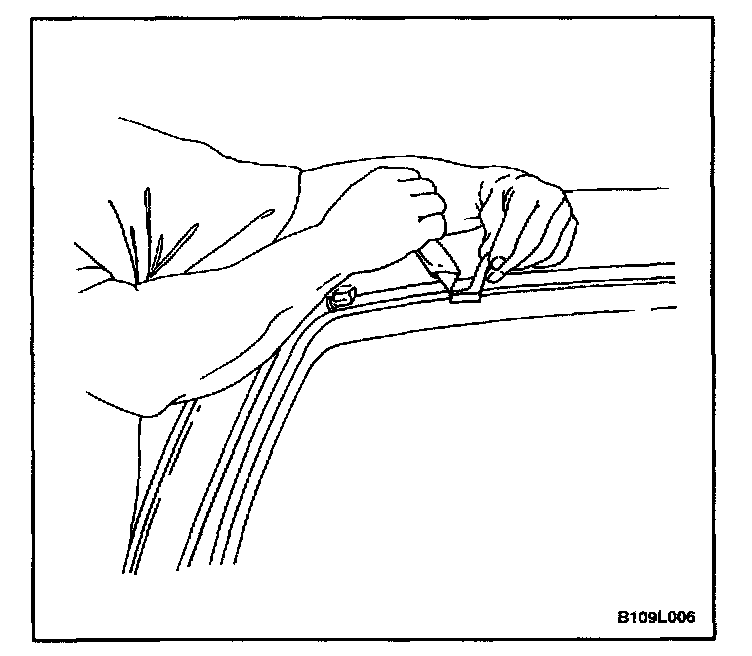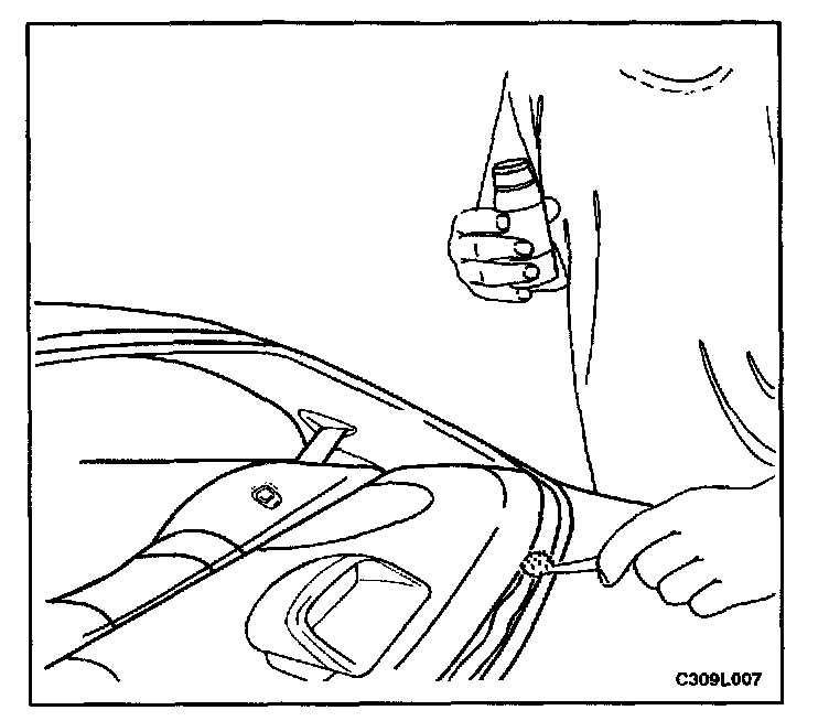 9. Check for waterleaks by pouring water on the rear window. If a leak is found, dry the window and fill the area that leaks with adhesive. If the leak persists, remove the rear window and repeat the entire procedure.