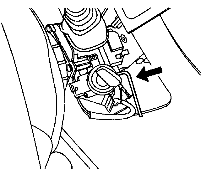 4. With the key in the ignition turned to the position designated ACC, remove the lock cylinder by pressing down the detent spring with a 2.5 mm alien wrench or other suitable tool, and pulling the lock cylinder out of the switch cylinder housing.