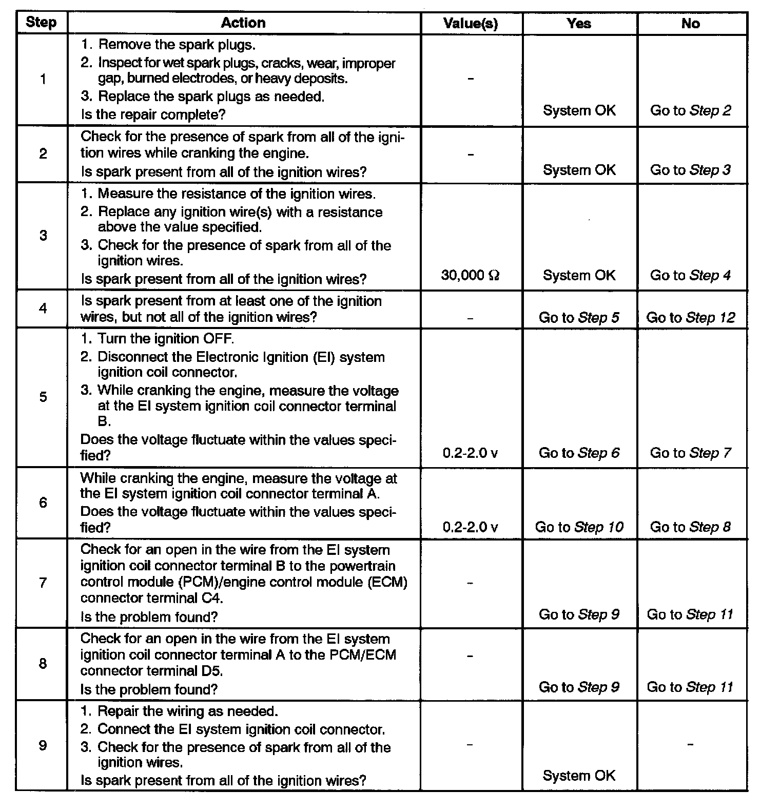 6. After confirming PCM/ECM inputs for the electronic spark timing to the EI system ignition coil are OK, it can be determined that a faulty EI system ignition coil is at fault.