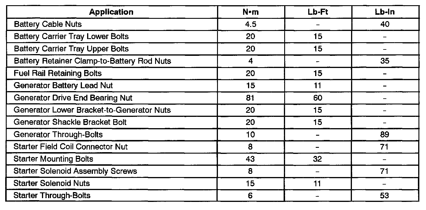 Starting and Charging: Specifications