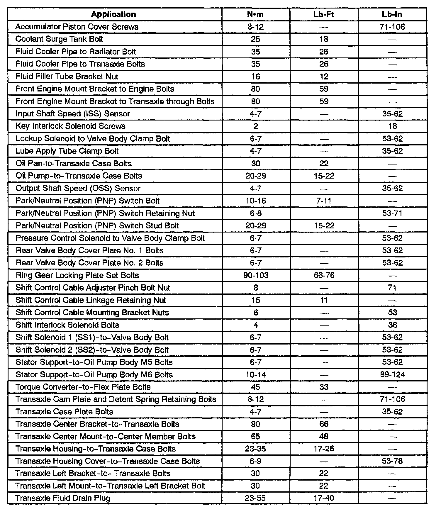 AW50-40 LE 4-spd A/T, Transaxle Torque: