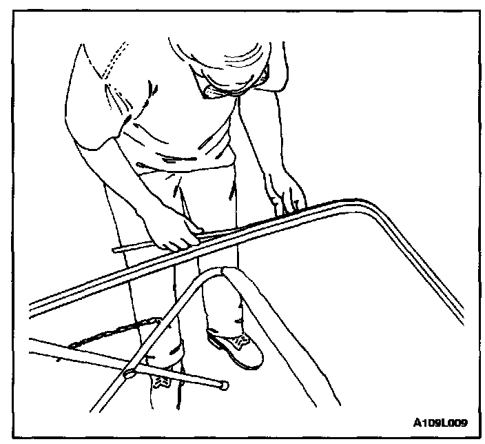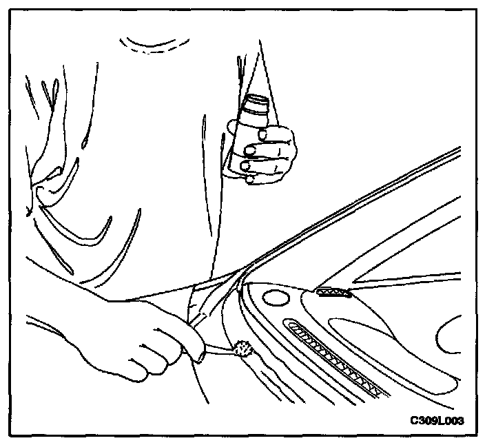9. Check for waterleaks by pouring water on the windshield. If a leak is found, dry the windshield and fill the area that leaks with adhesive. If the leak persists, remove the windshield and repeat the entire procedure.