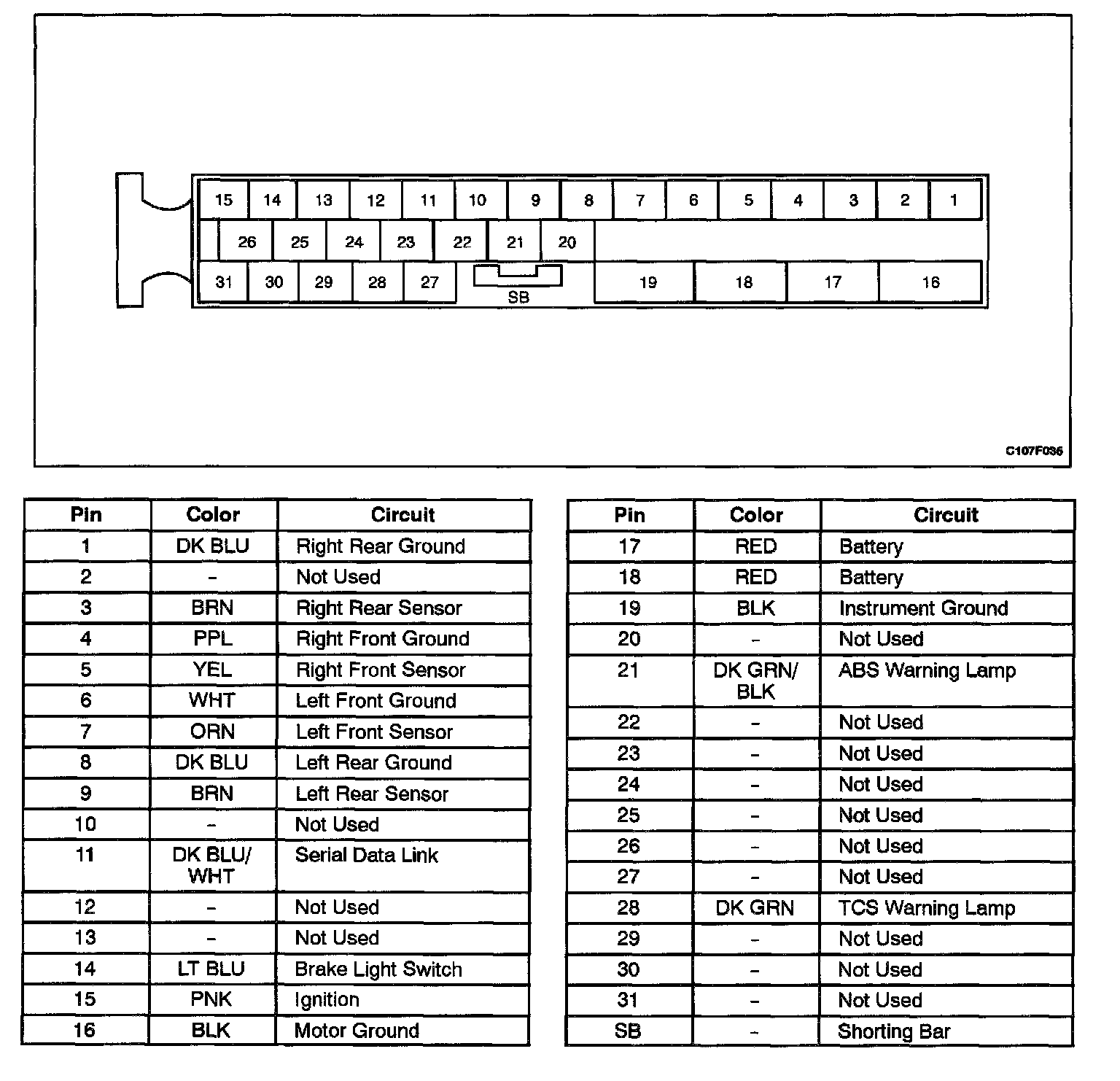 EBCM Connector Face View (With Traction Control System)