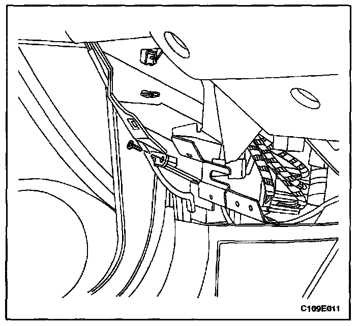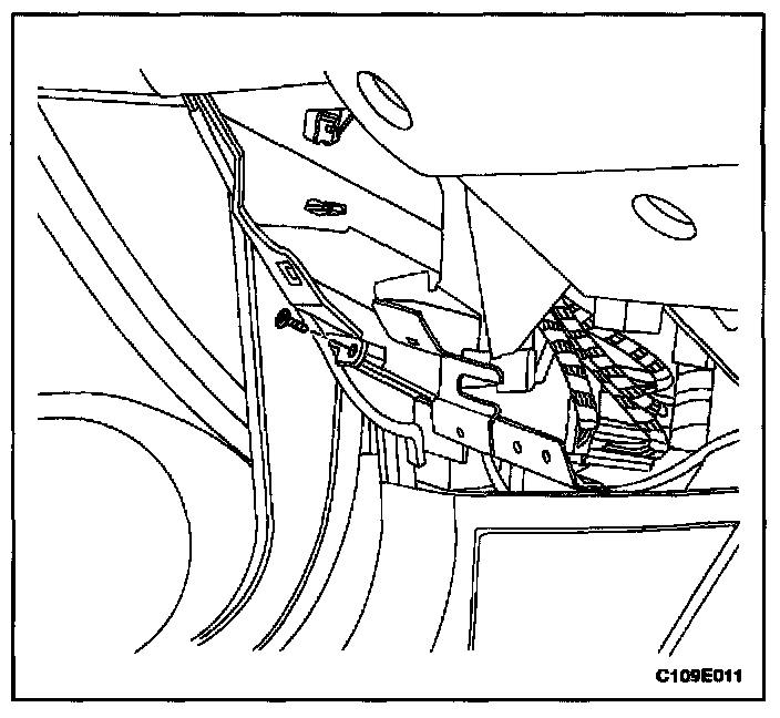 2. Remove the hood release handle screw and the knee bolster trim panel.