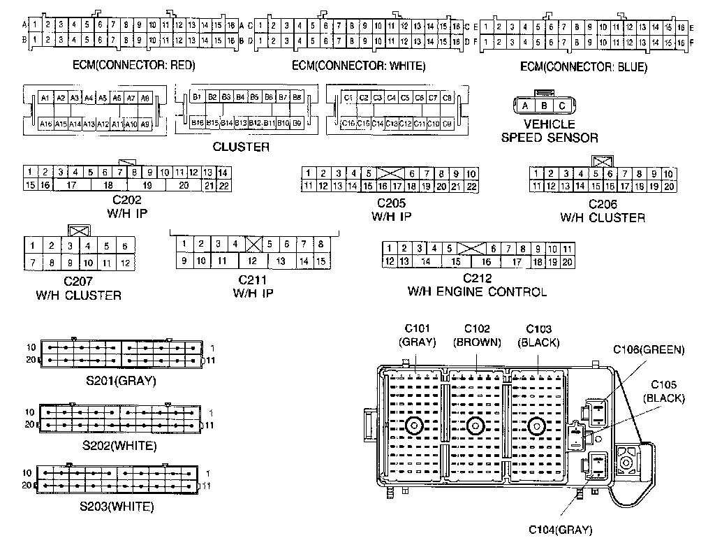 Connector Identification Symbol & Pin Number Position: