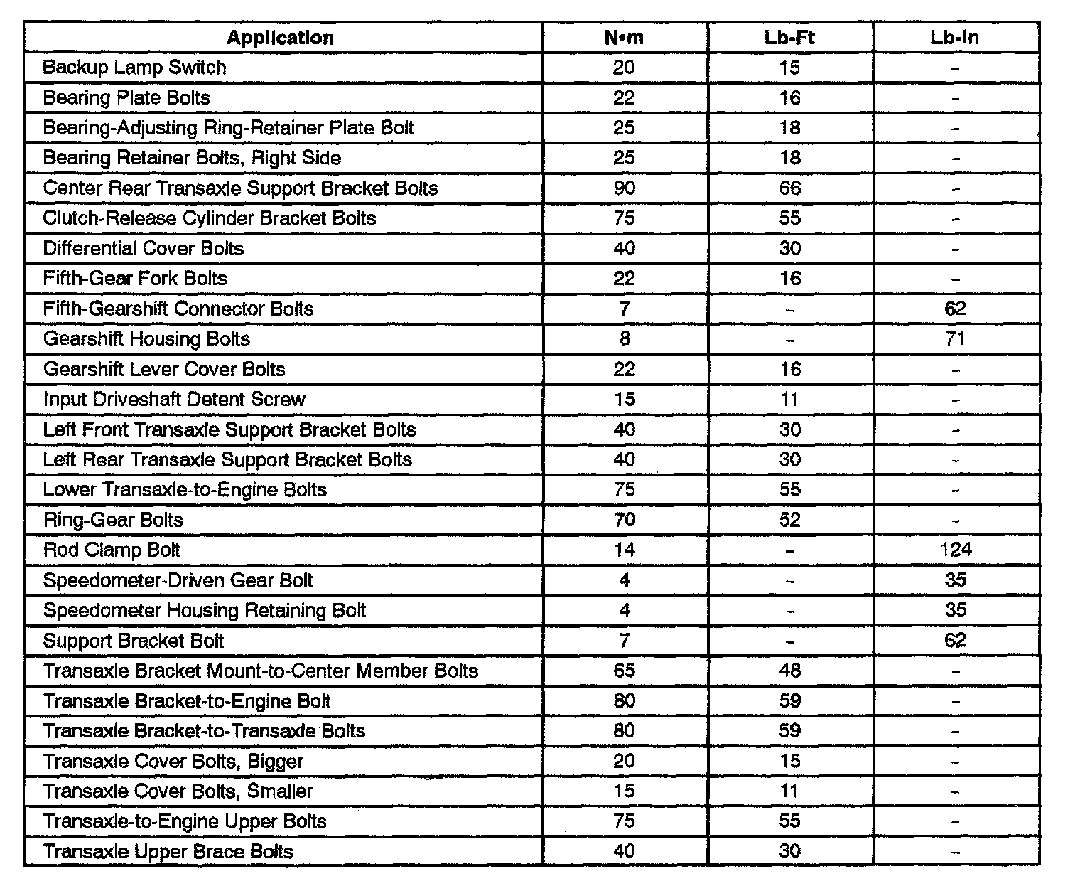 D-20 5-spd M/T, Transaxle Torque: