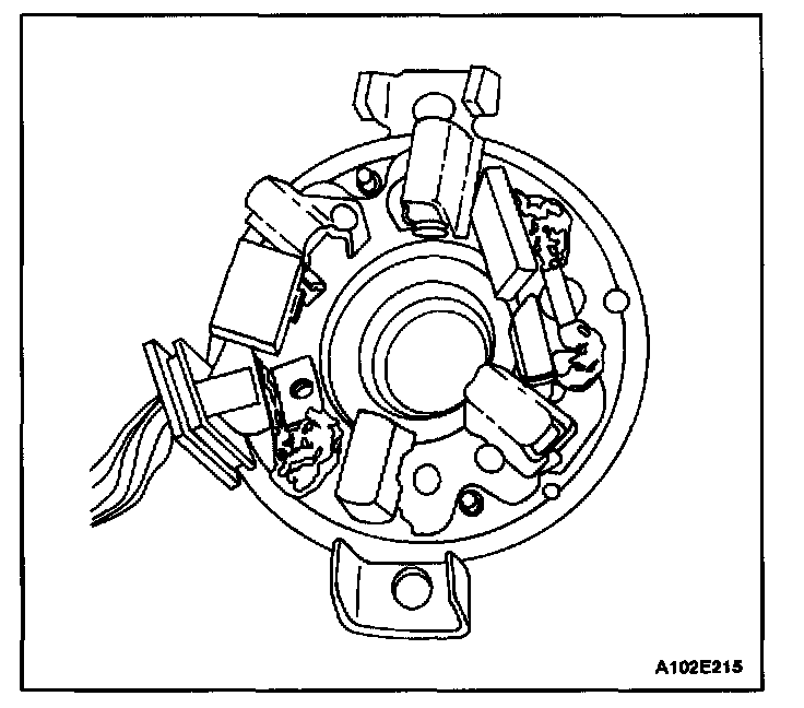 4. Inspect the brushes, the pop-out springs, and the brush holders for wear and damage. Replace the assembly, if needed.