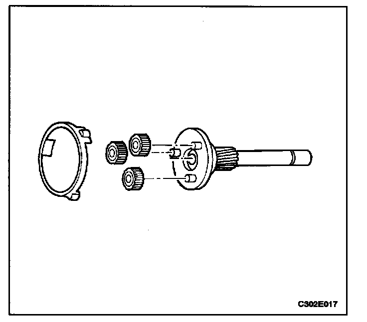 3. If full disassembly of the starter and the solenoid was performed, begin reassembly by placing the gear support and collar on the driveshaft assembly.