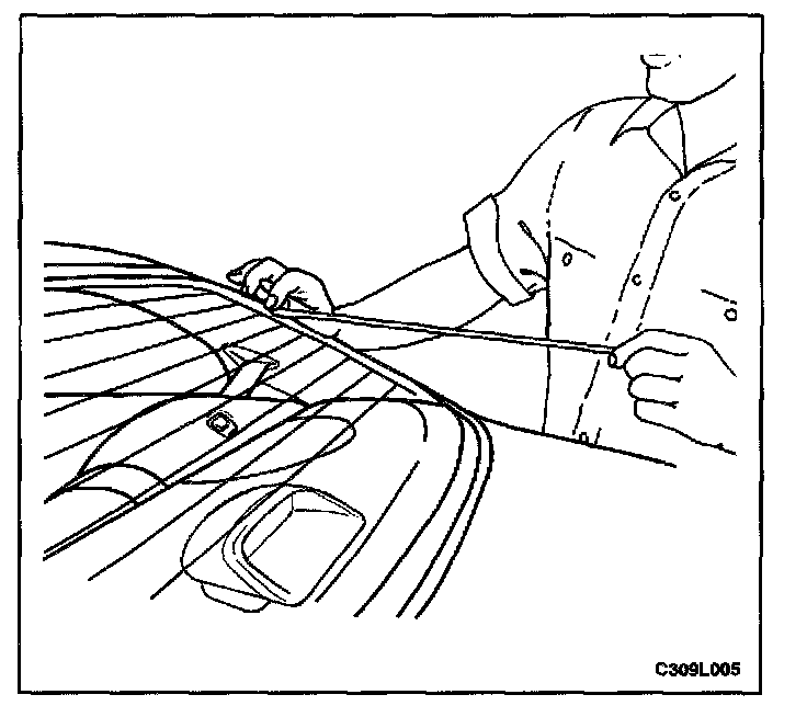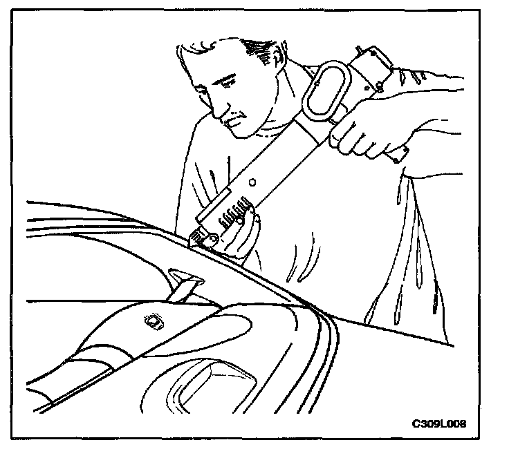 4. Using the glass sealant remover J-24402 cut the adhesive around the rear window.