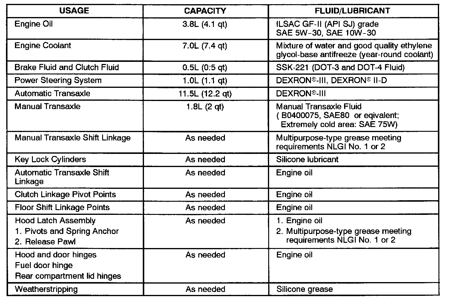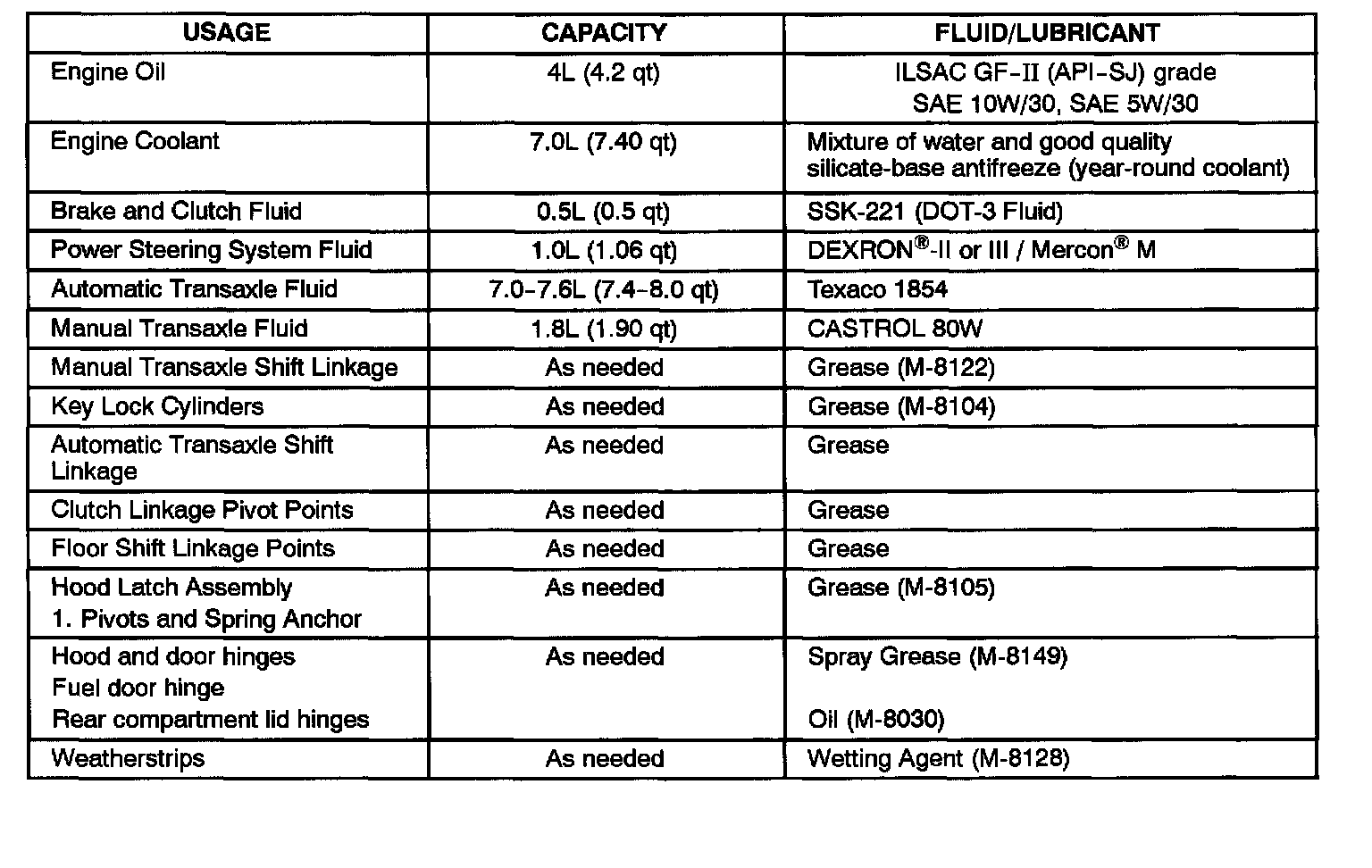 Recommended Fluids And Lubricants: