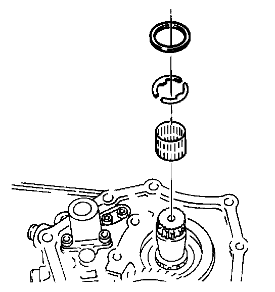 20. Install the thrust washers, the retaining ring, and the needle bearing into the mainshaft-driven fifth-gear assembly.