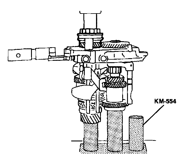 18. Install the input drive fifth gear using the installer KM-554 and the installer sleeve KM-334.
