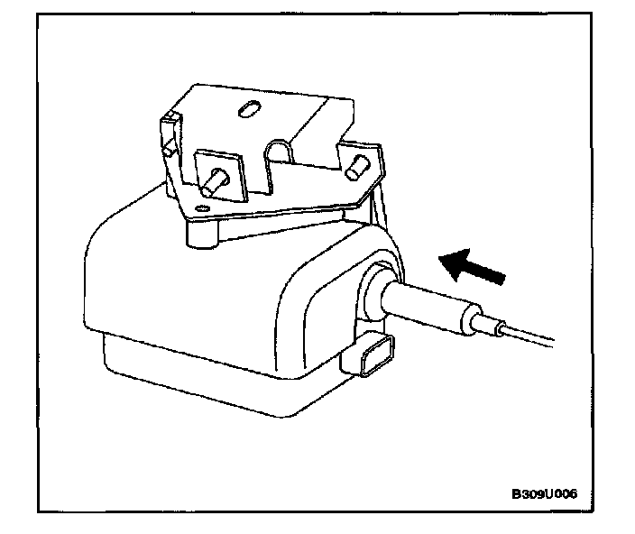 3. Press the retaining tabs of the cable adjuster, and remove the adjuster from the mounting bracket.