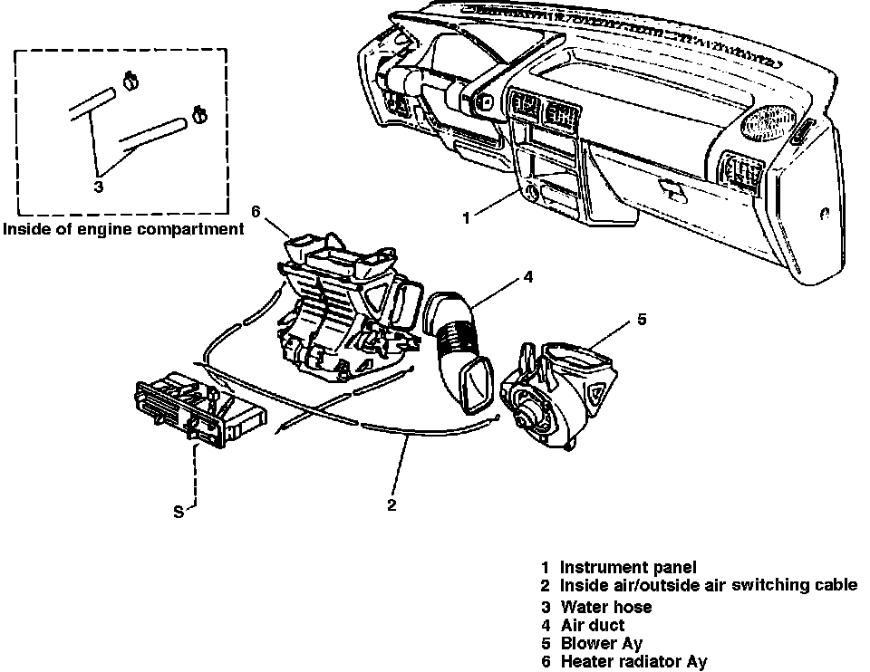 3. Disconnect inside/outside air switching cable from blower assembly.