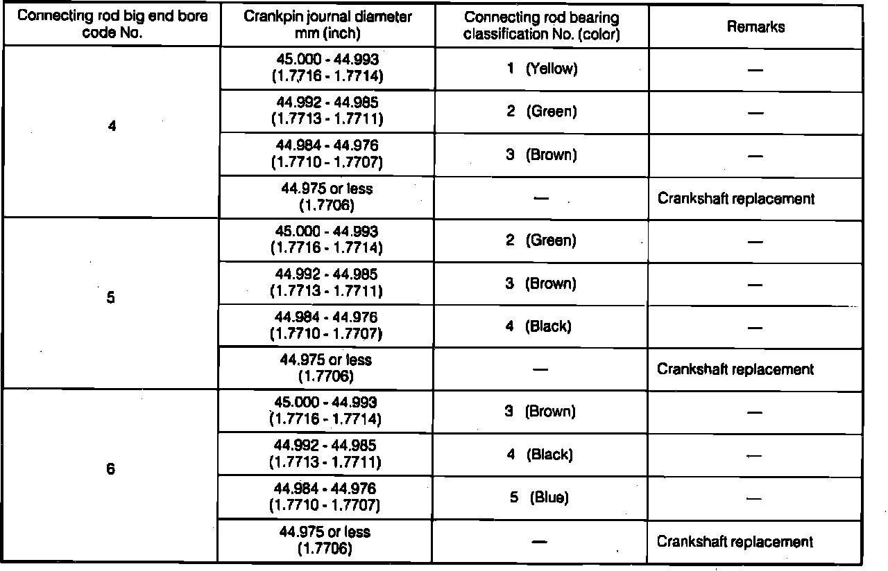 Fig. 36 Connecting Rod Bearing Identification Chart.: