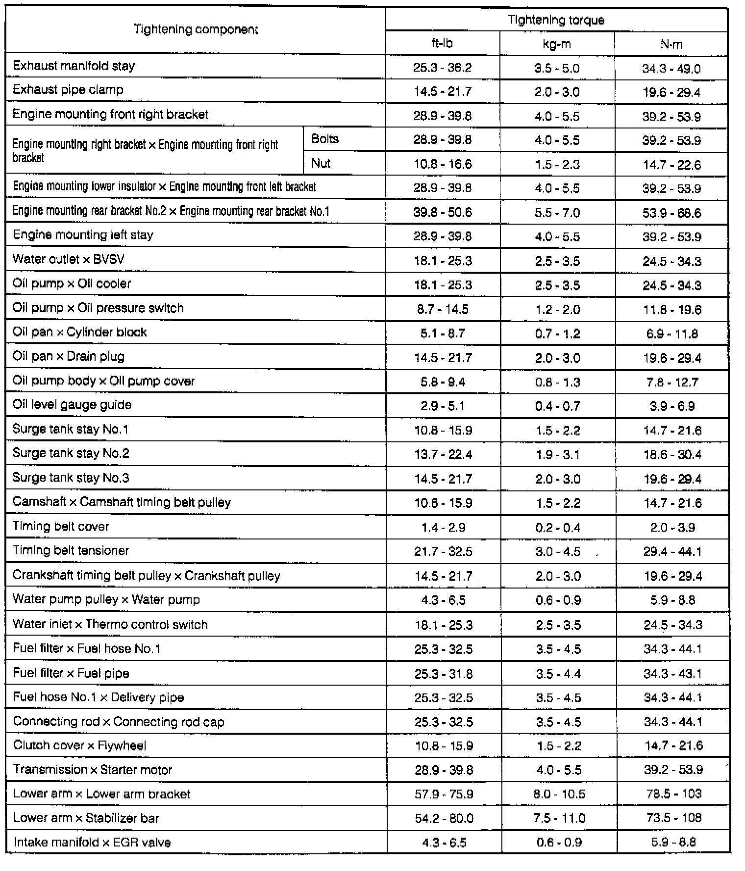 Torque Specifications