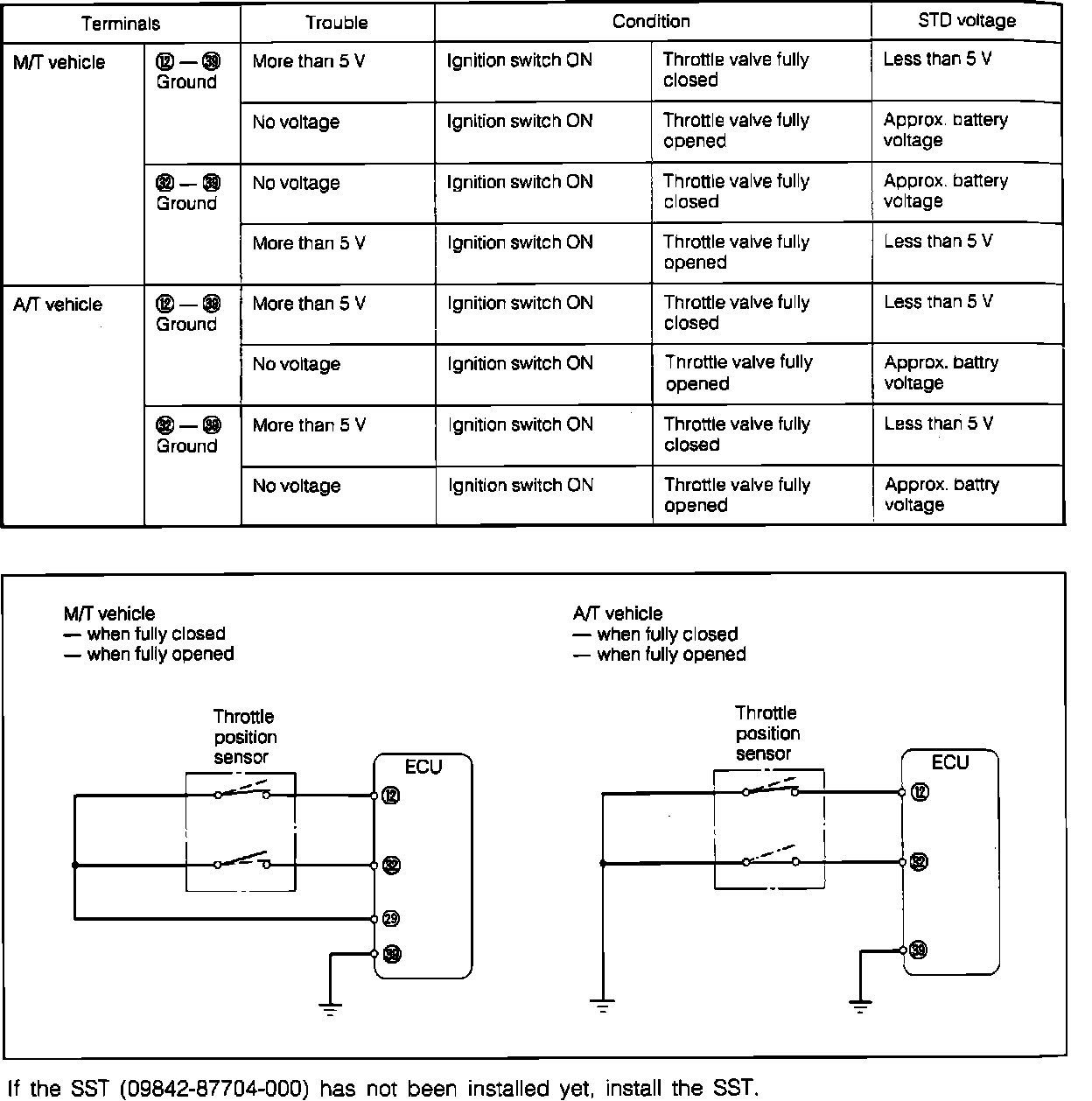 Fig. 48 ECU System Diagnosis, Throttle Position Sensor Check (Part 1 Of 2):