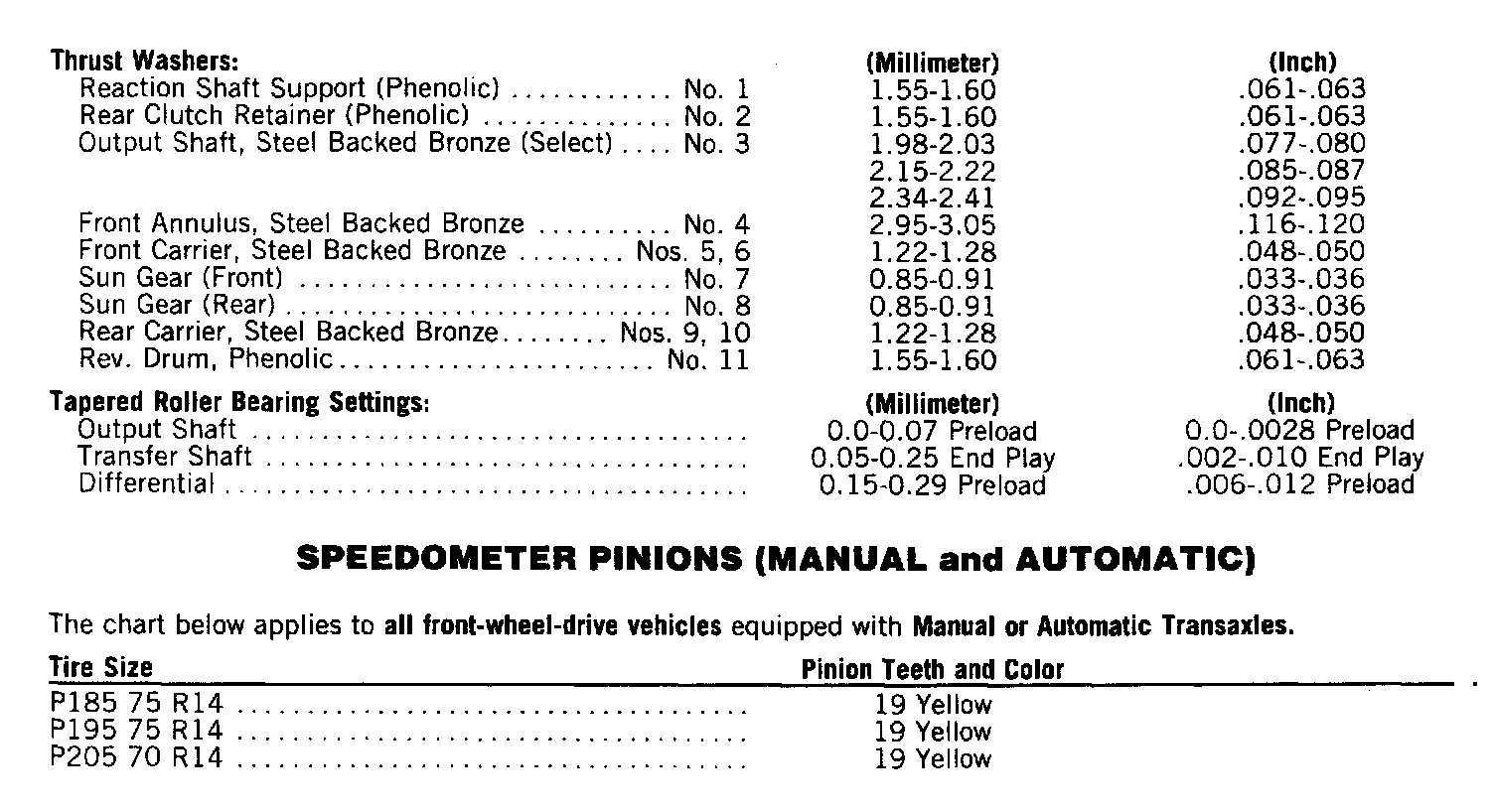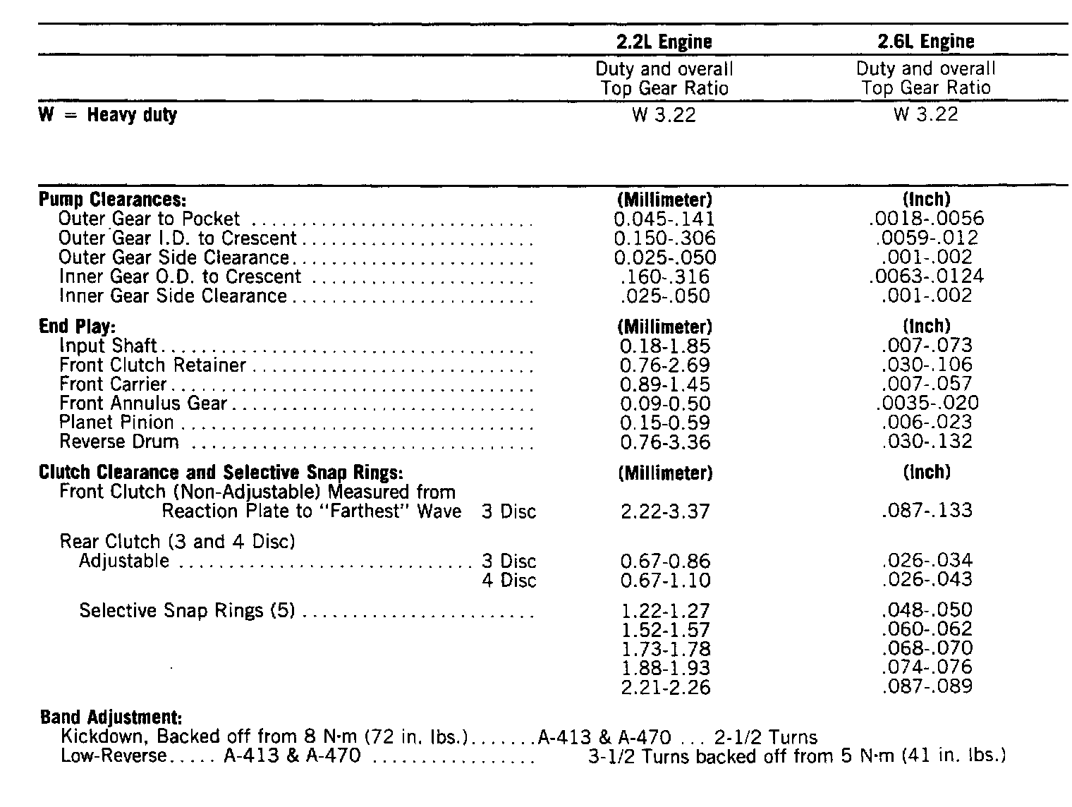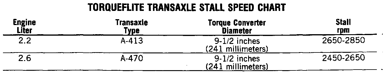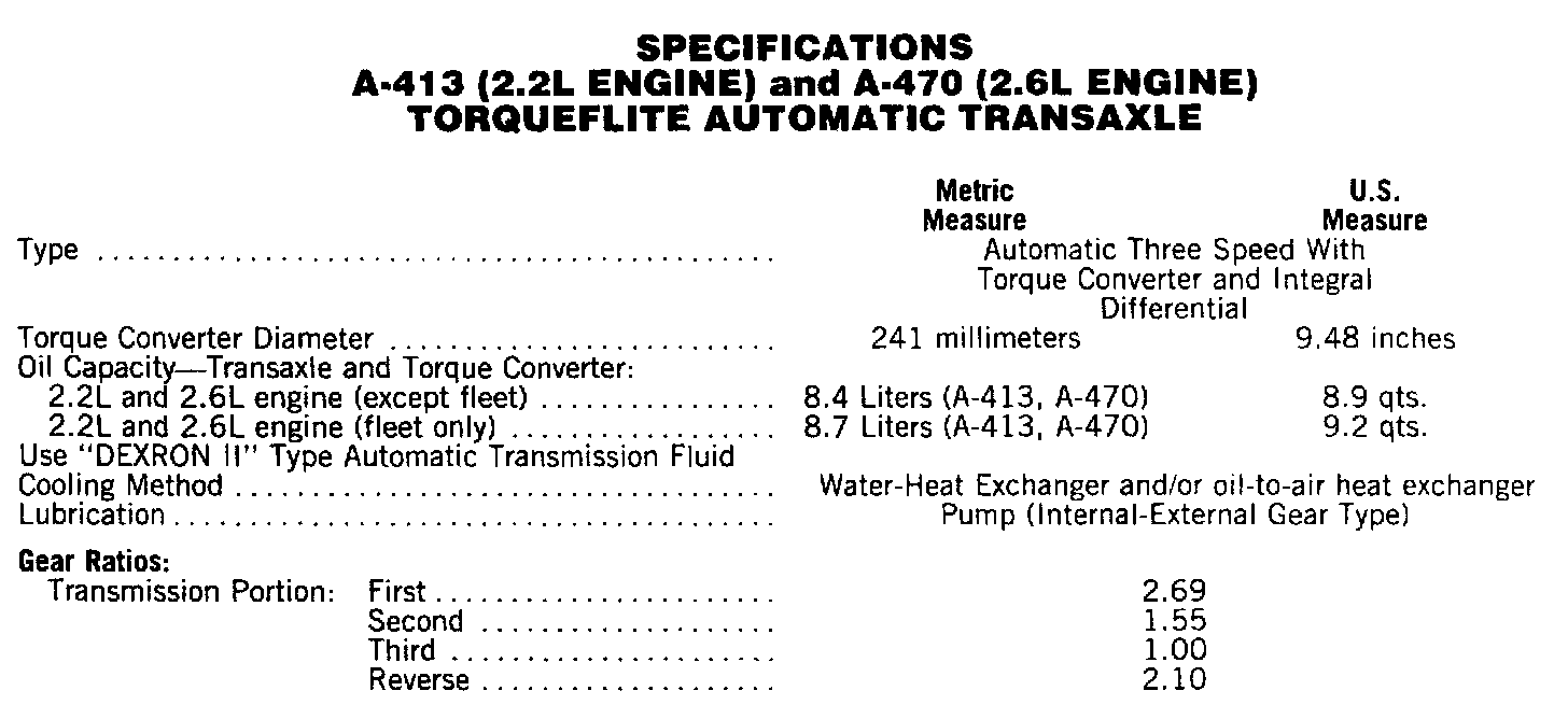 SpecificationsA-413 & A-470 Torqueflite Transaxles