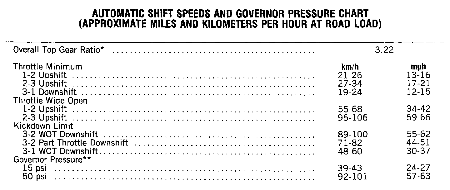 Shift Speeds And Governor Specifications: