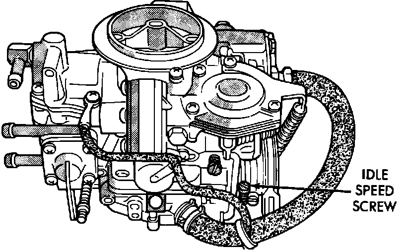- With the engine at normal operating temperature (off fast idle), momentarily open the throttle and release it to make sure there is no bind in the linkage and that idle speed screw is against its stop.