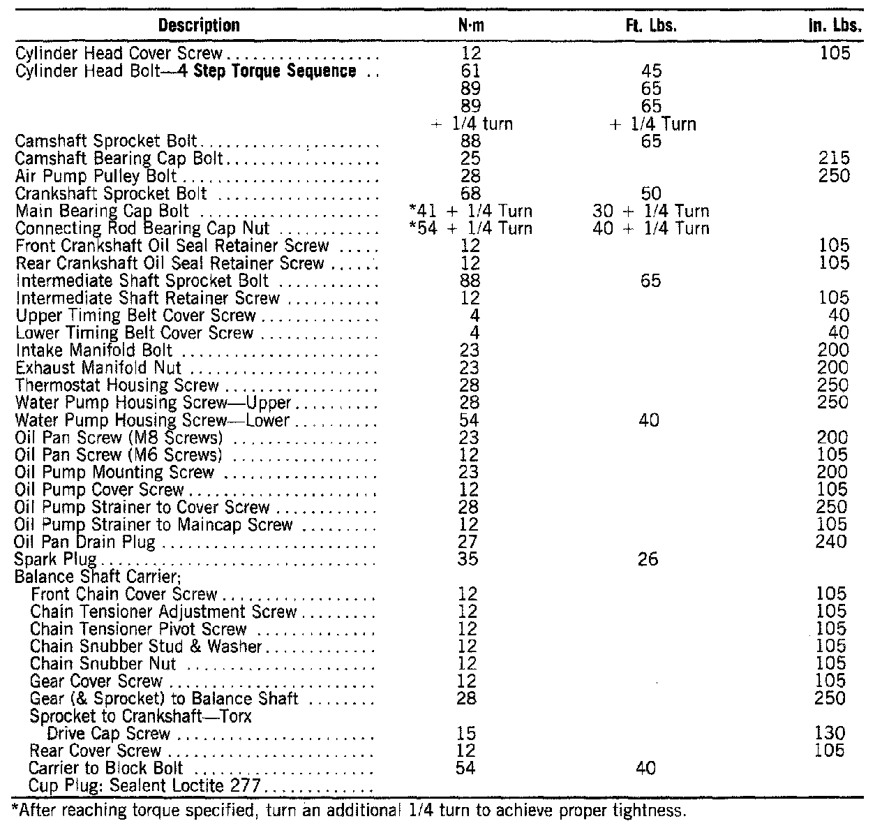 Tightening Specifications