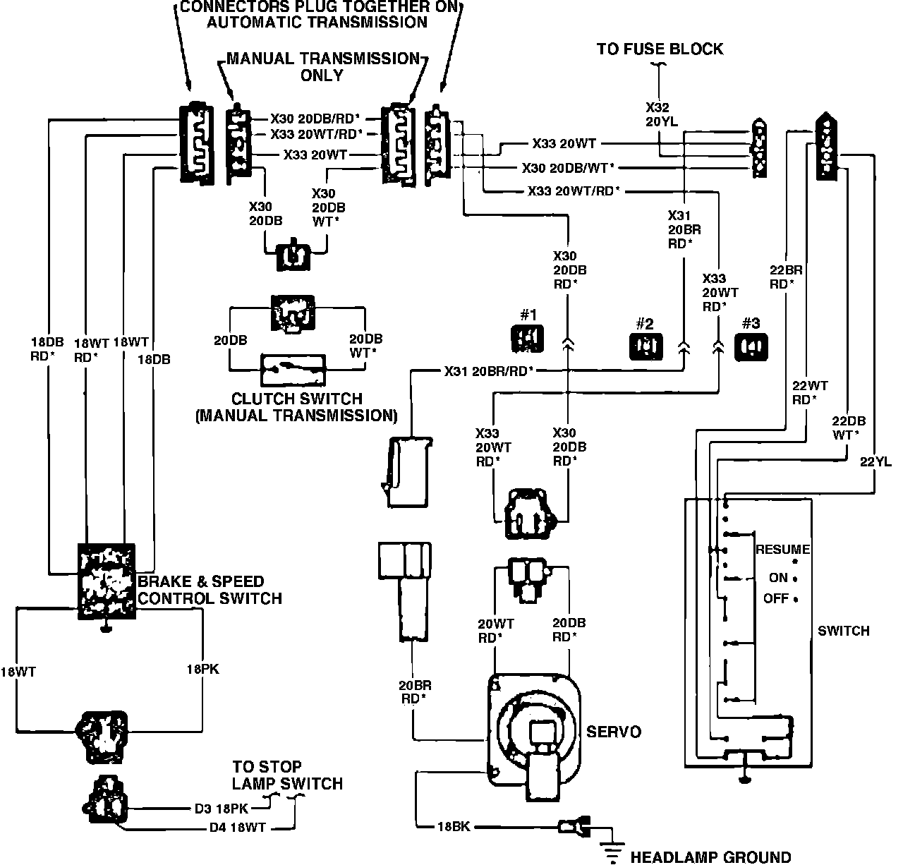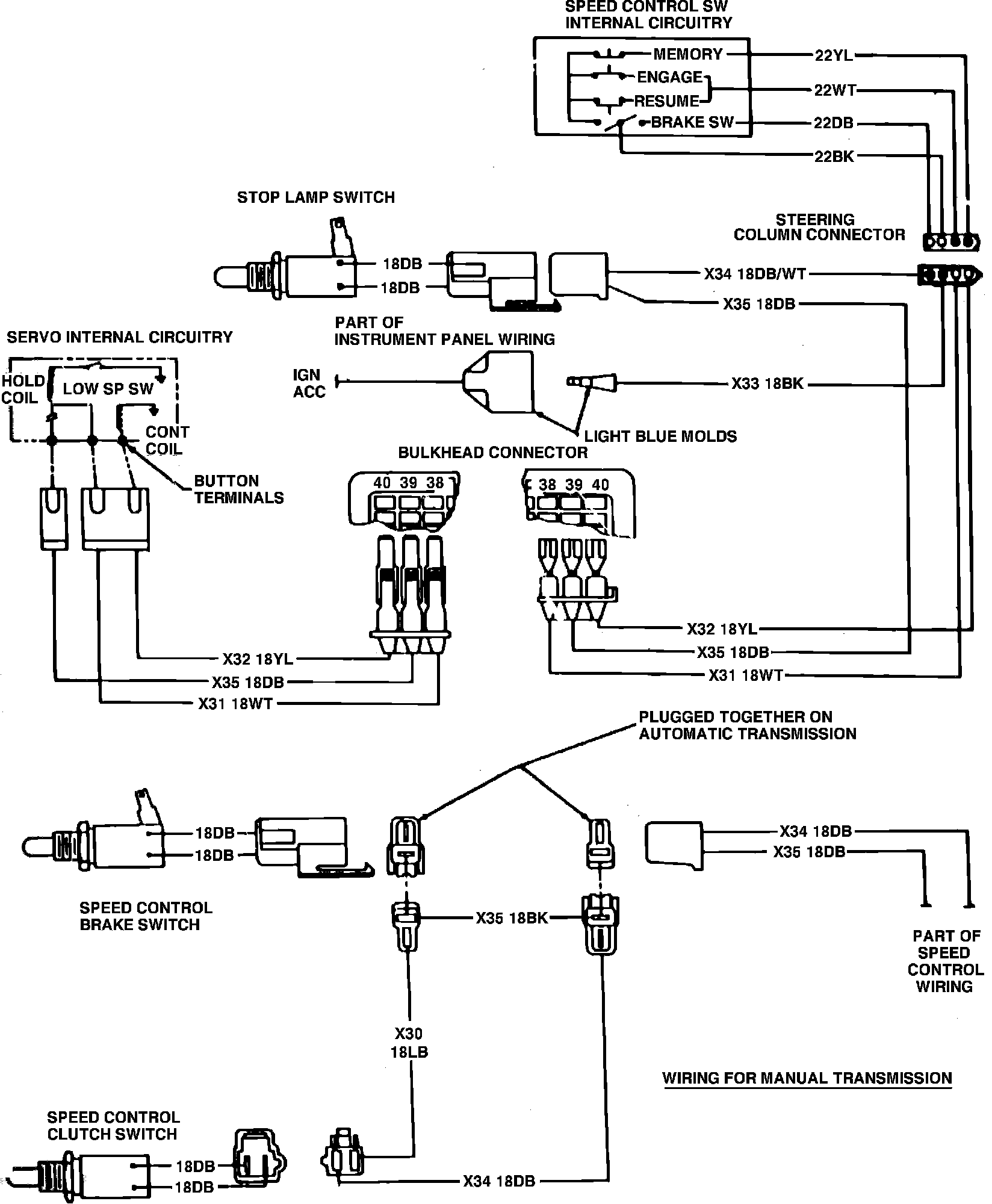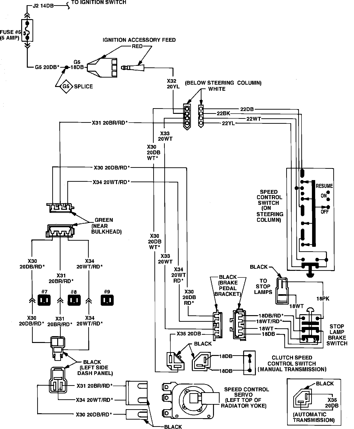 Refer to Speed Control Wiring Diagrams. Prior to performing any tests, ensure servo or valve body and electronic module are properly tested.Fig. 2 Speed control wiring diagram. 1980-84 Vans, Wagons & Front Sections: