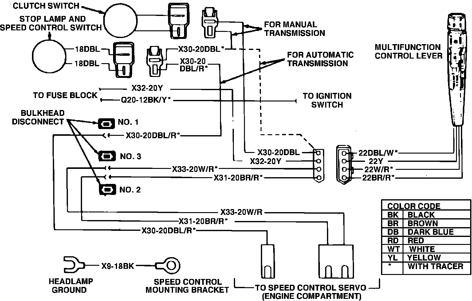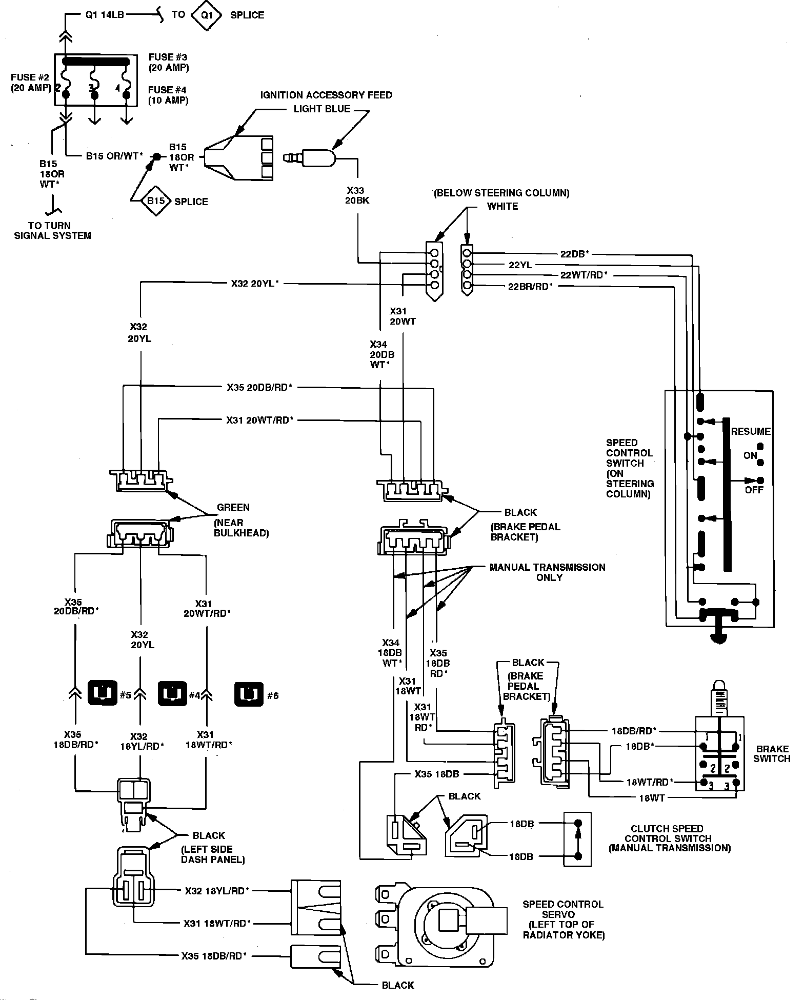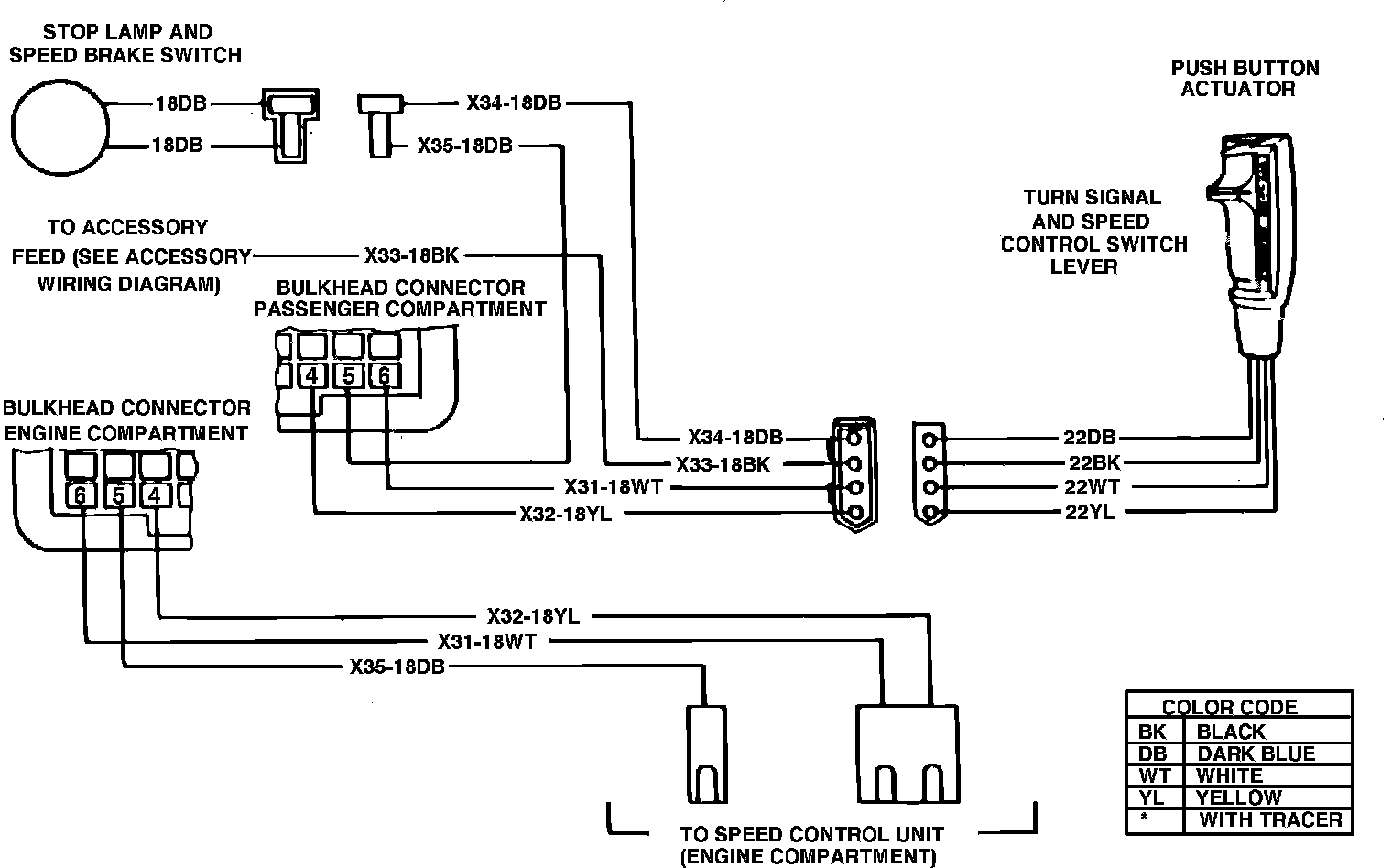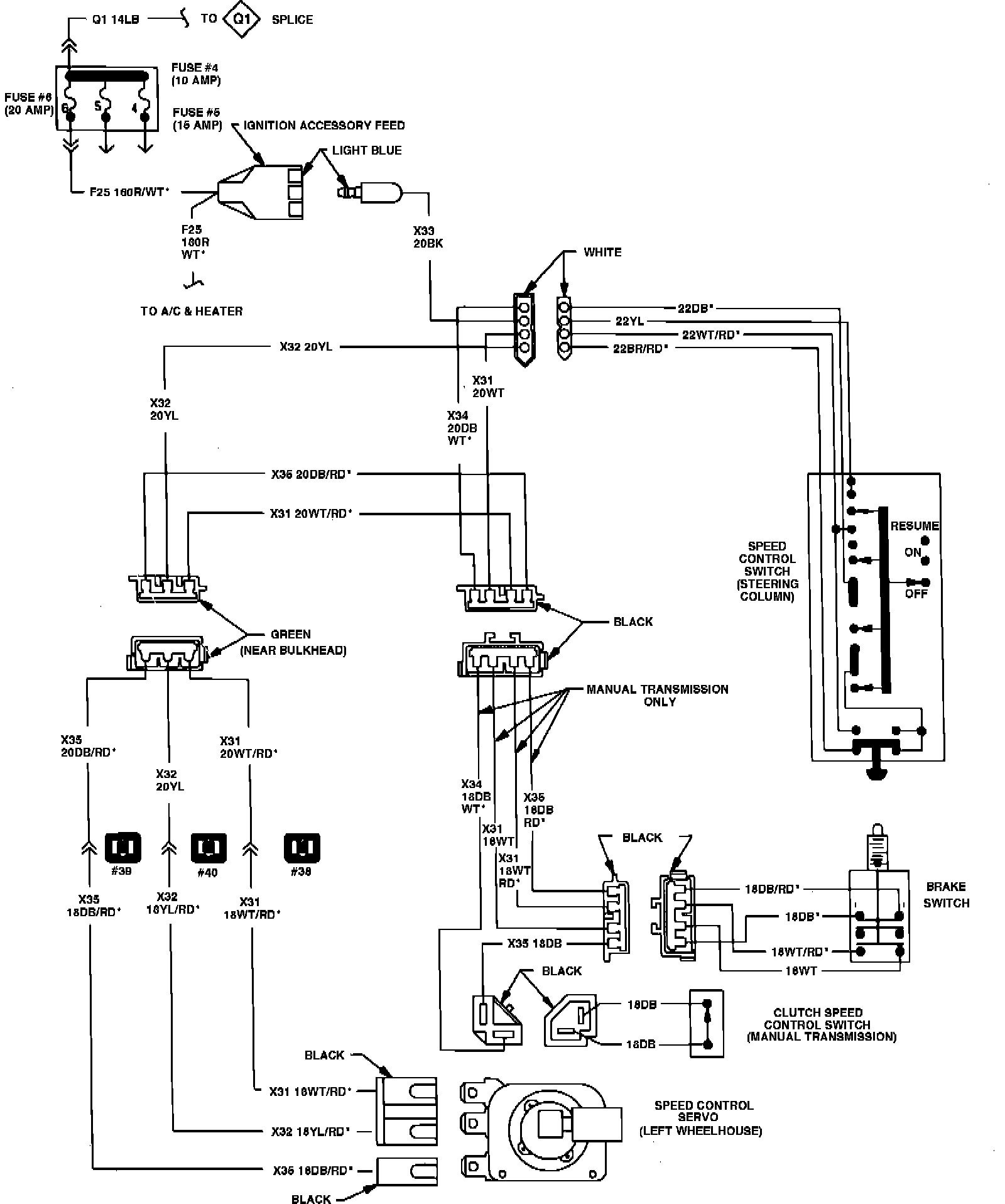 Refer to Speed Control Wiring Diagrams. Prior to performing any tests, ensure servo or valve body and electronic module are properly tested.Fig. 2 Speed control wiring diagram. 1980-84 Vans, Wagons & Front Sections: