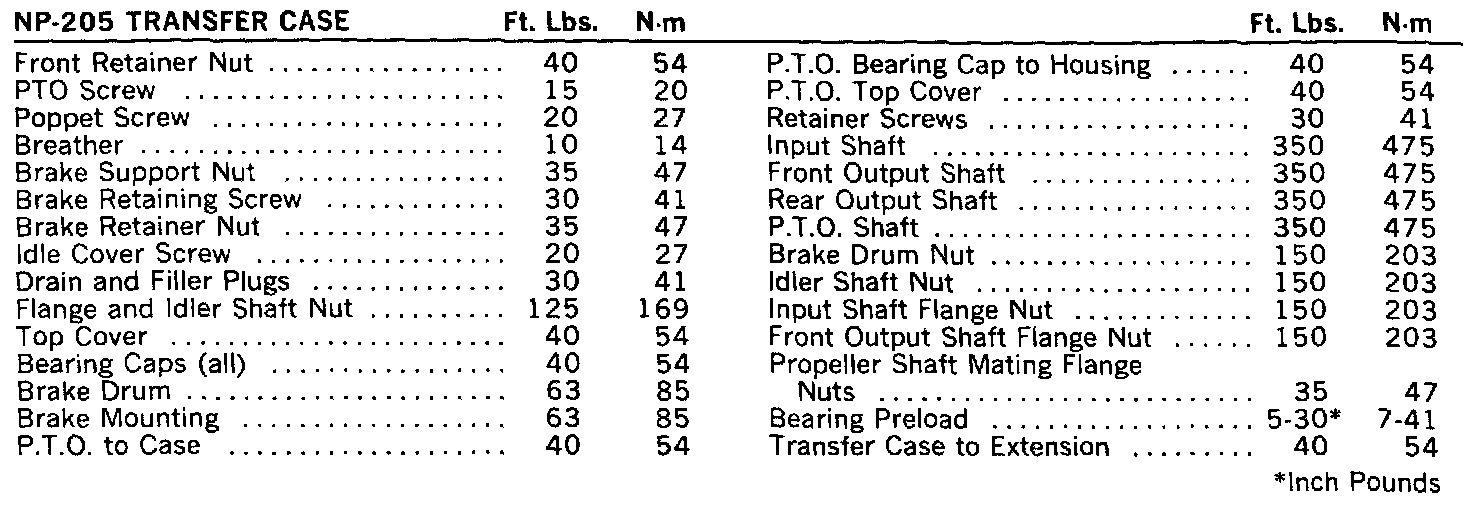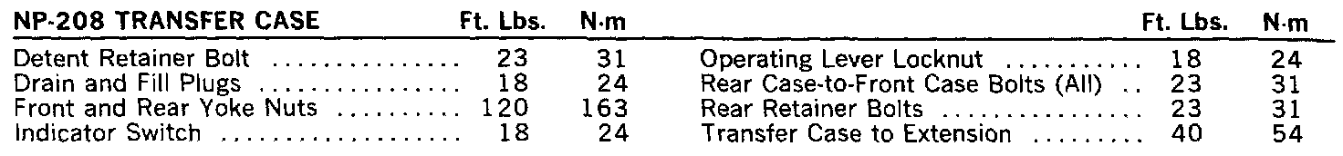 NP-208 Torque Specifications: