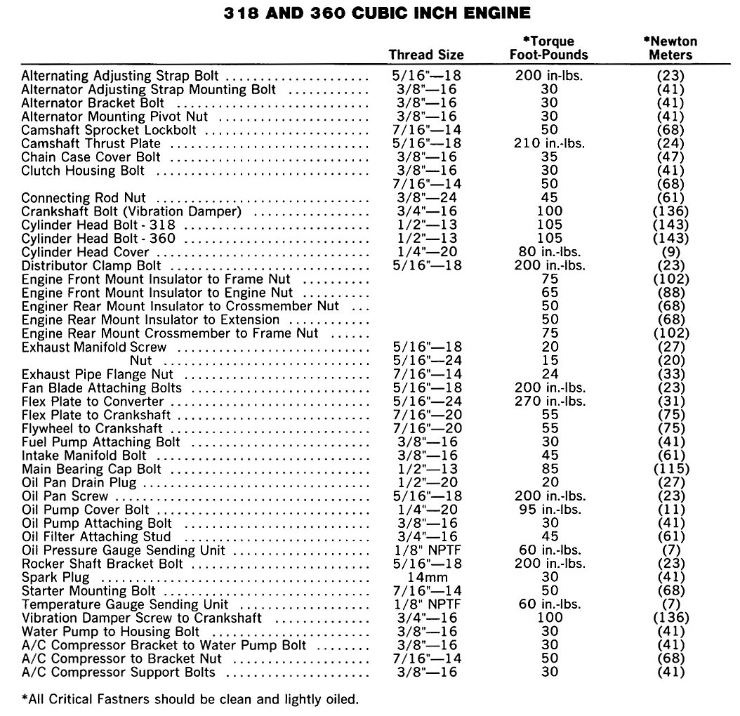 Tightening Specifications