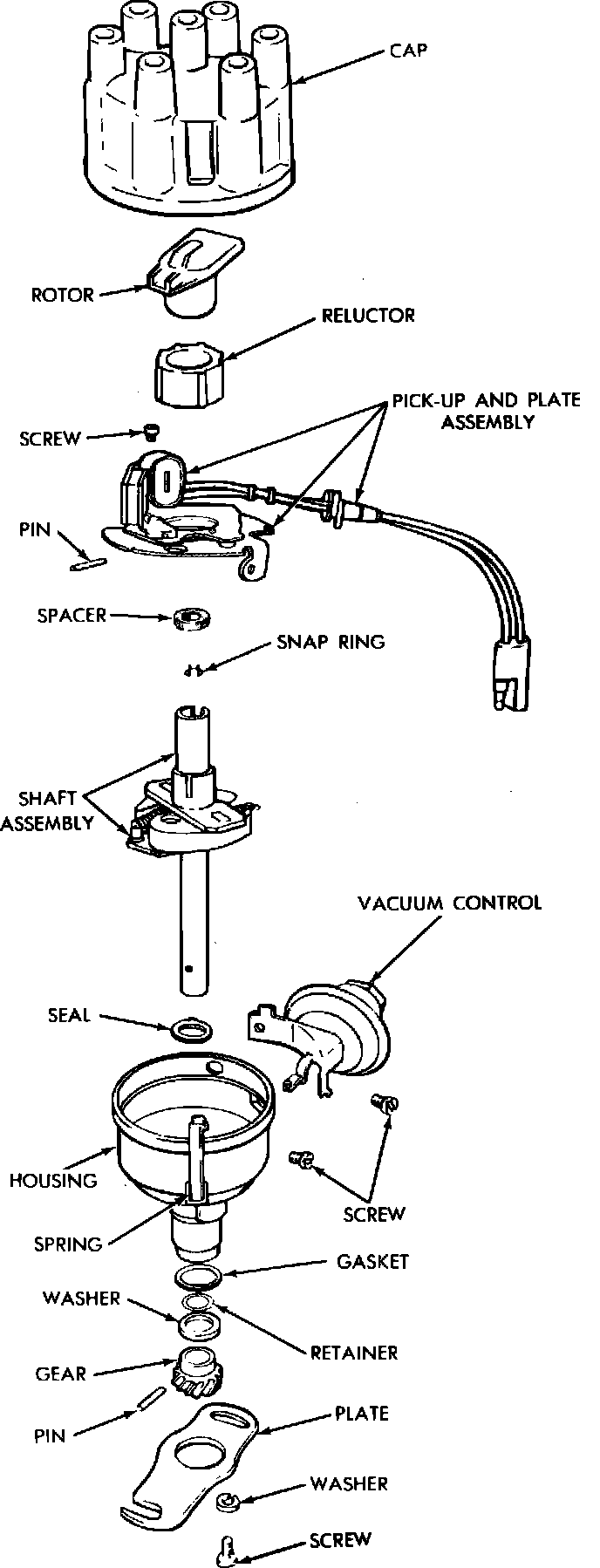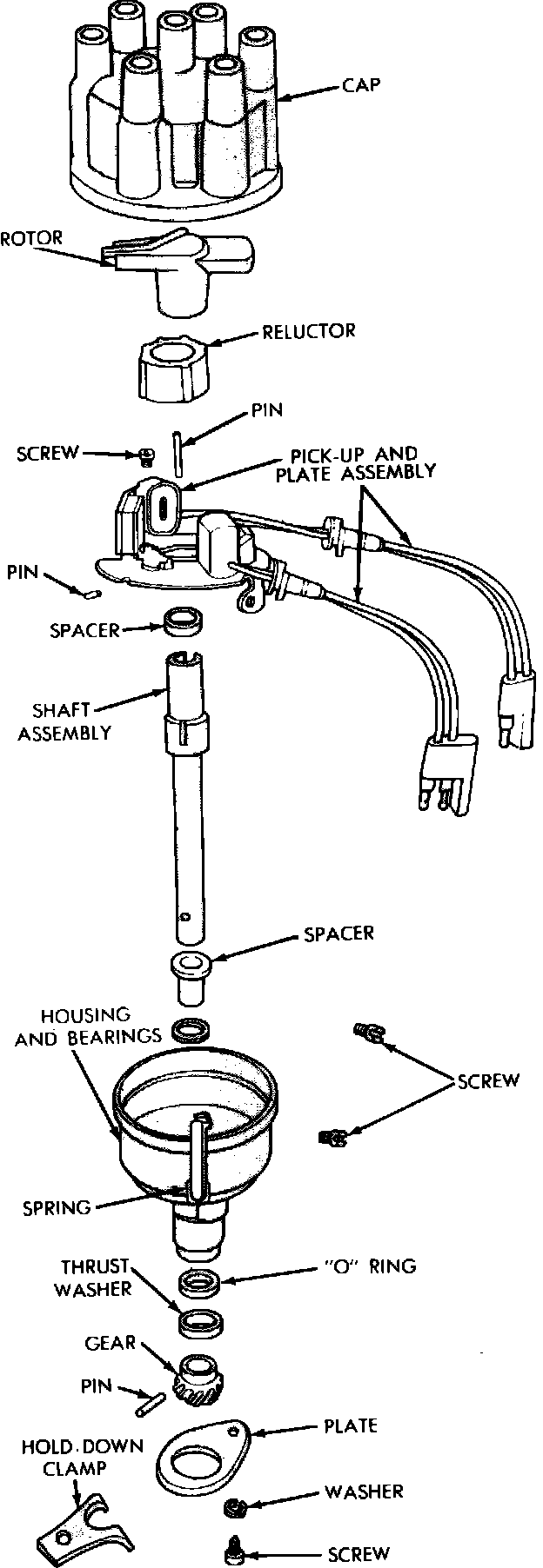 Fig. 12 Typical disassembled view of Chrysler electronic 6 cylinder distributor with single pickup: