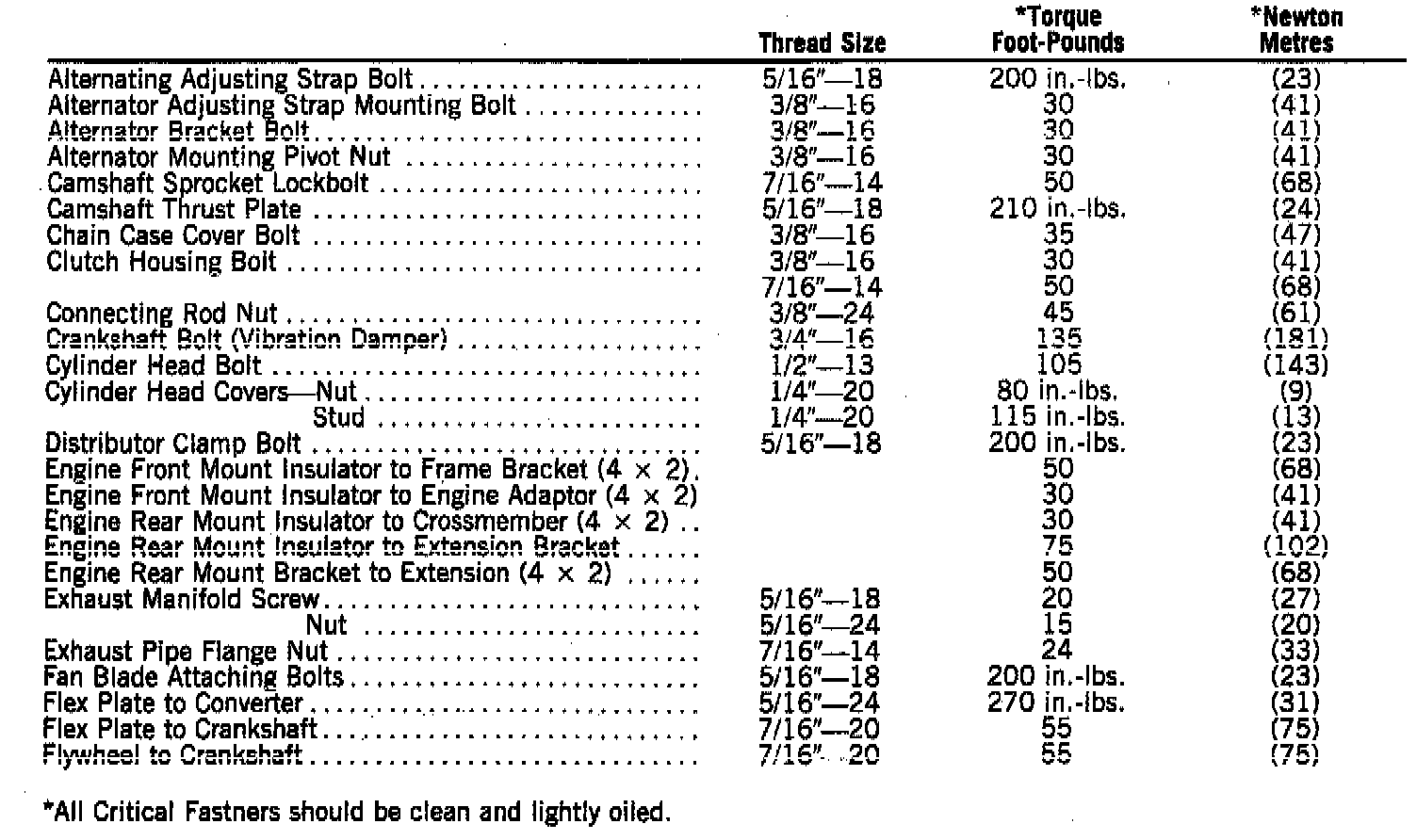 Tightening Specifications