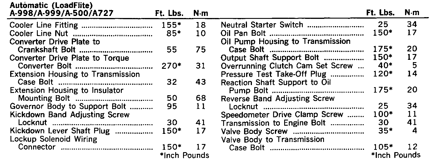 Torque Specifications