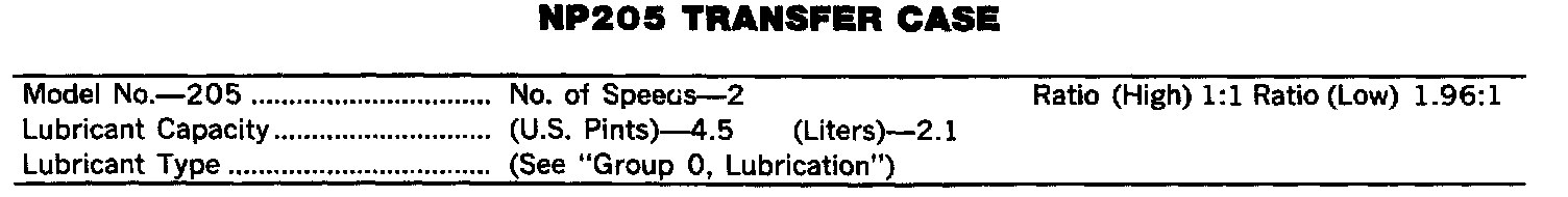NP205 Transfer Case Specifications: