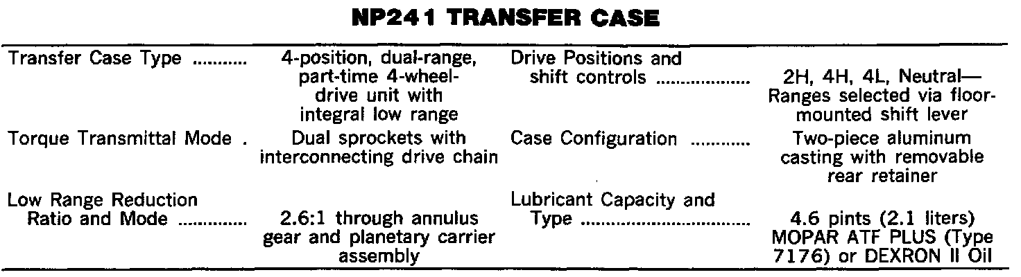 NP241 Transfer Case Specifications: