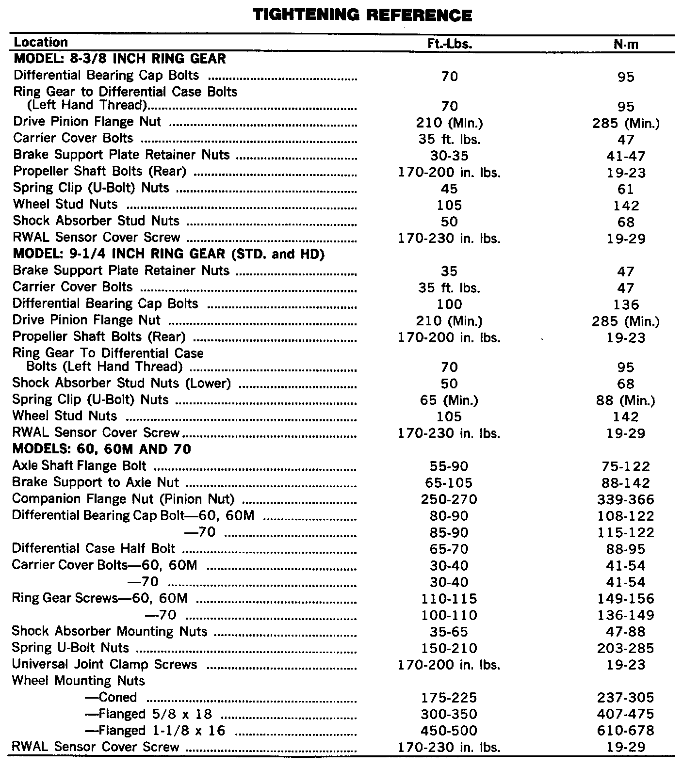 Rear Differential Torque Specifications: