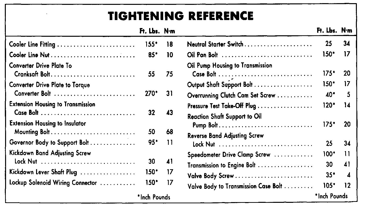 Torque Specifications