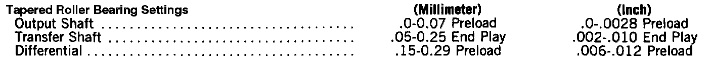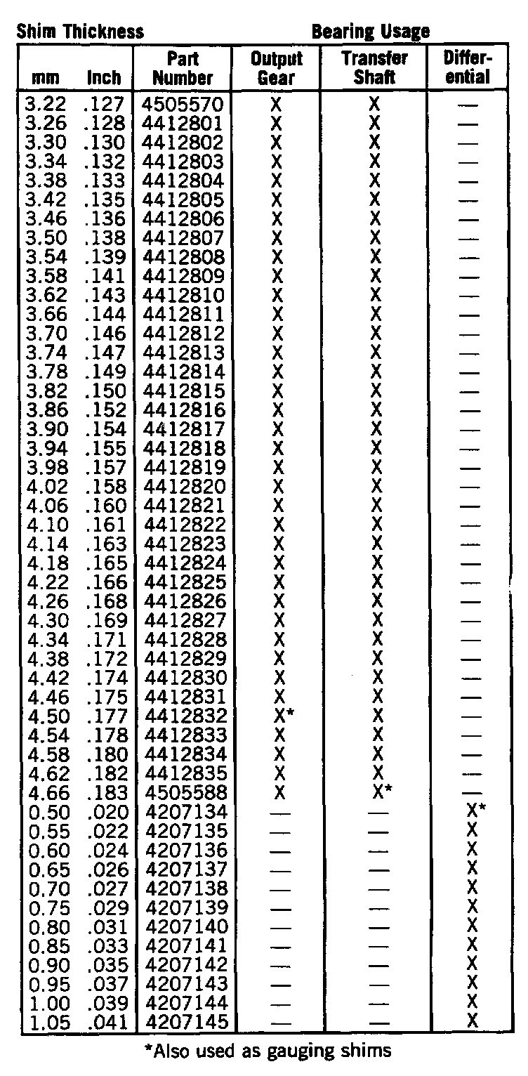Transfer Bearing Shim Chart: