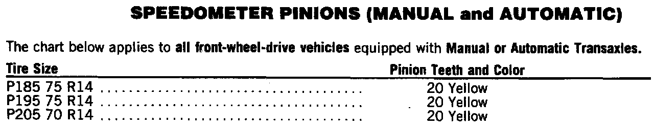 Speedometer Pinions:
