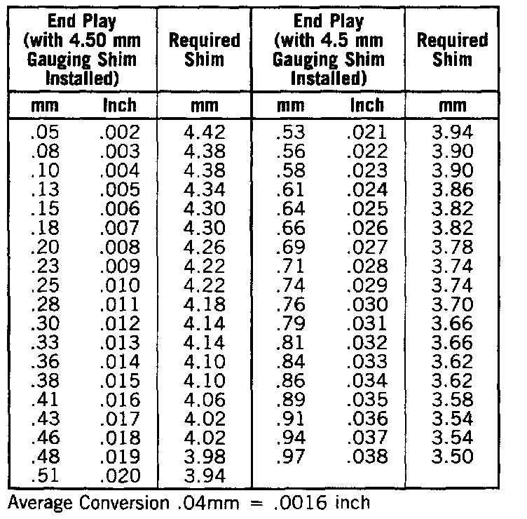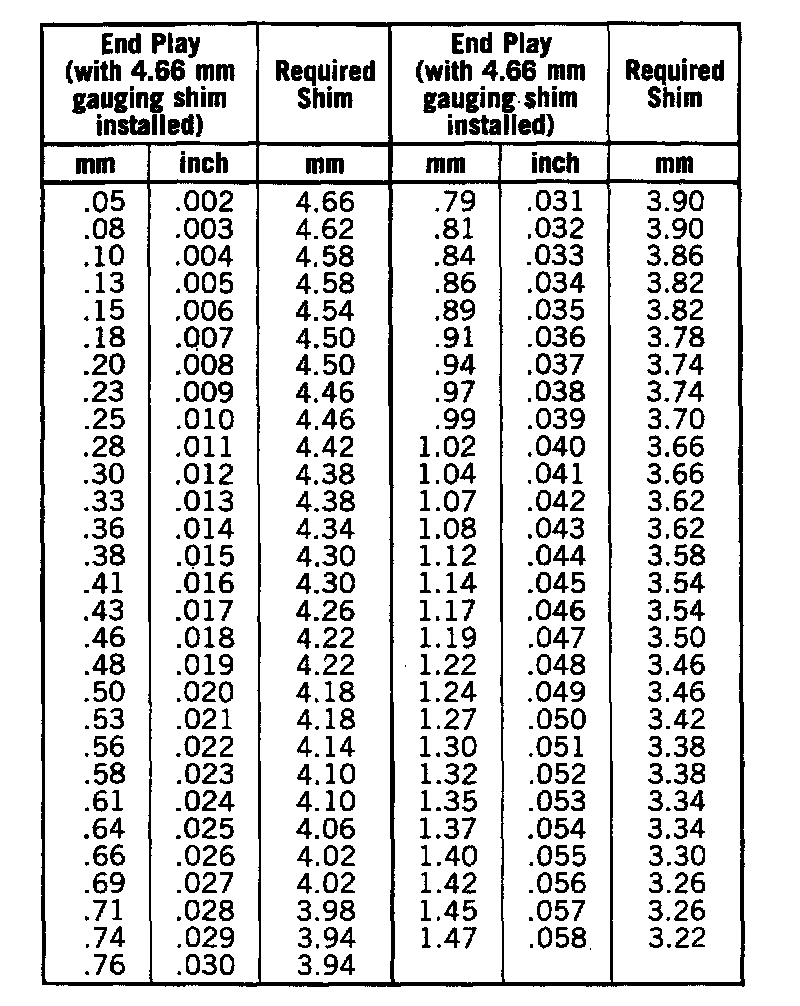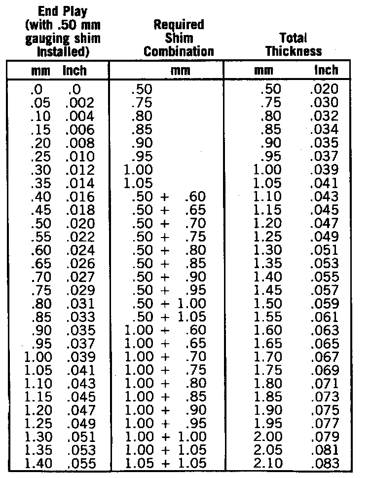 Bearing Shim Chart: