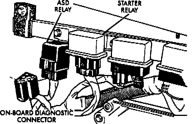 4. On 1990-95 models, after necessary emission maintenance has been performed, connect Diagnosis Read-Out Box II (DRB II) to the on-board diagnosis connector. See images above.
