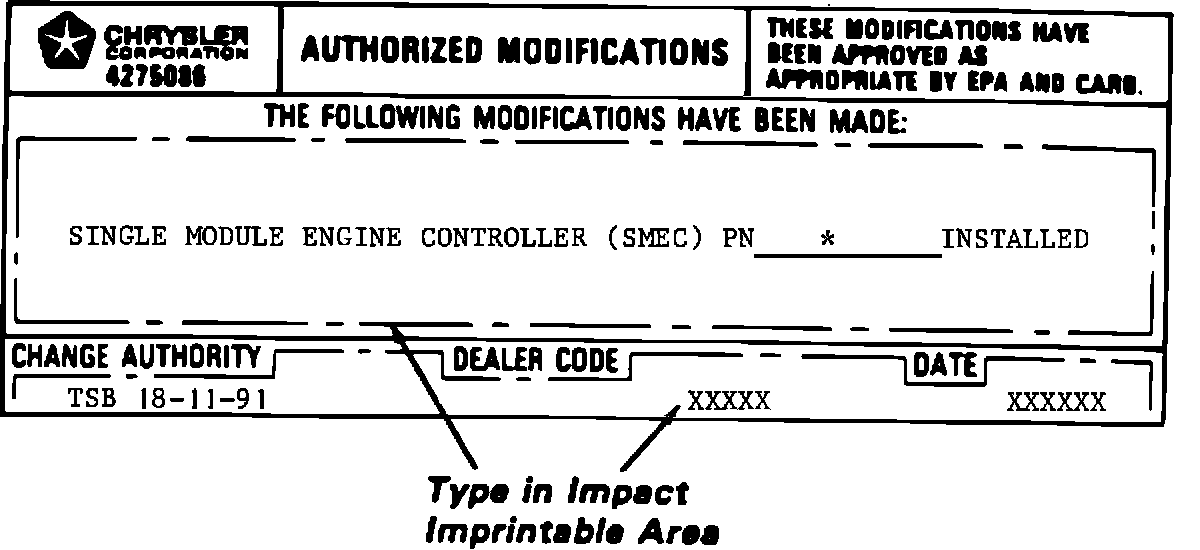 1. Replace the engine controller (SMEC/SBEC) with the appropriate unit called out in PARTS REQUIRED.