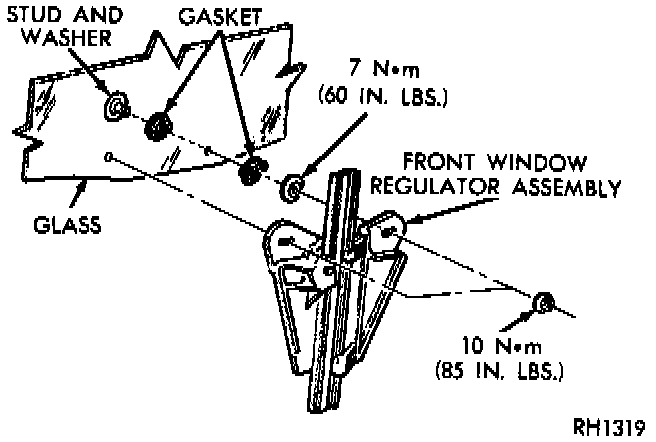 1. Remove trim panel assembly and liner.2. Align glass retaining nuts to major access holes.