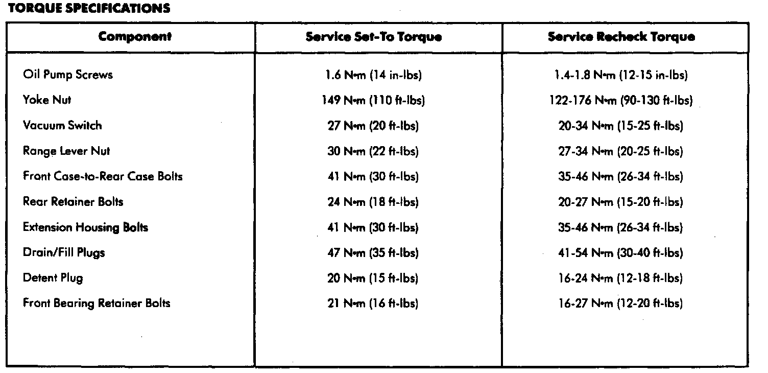 NP 205, Torque Specifications: