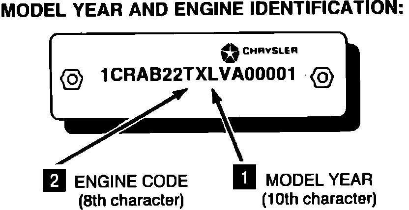 1 MODEL YEAR IDENTIFICATION: Refer to illustrations of the Vehicle Identification Number (V.I.N.). The year is indicated by a code letter which is the 10th character of the V.I.N.